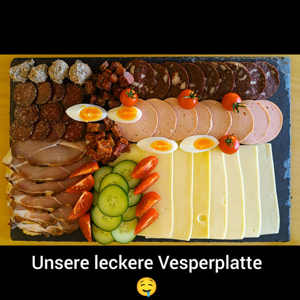 Gerne bieten wir Ihnen eine Vesperplatte mit unseren hofeigenen Produkten an, sprechen Sie uns einfach an :)